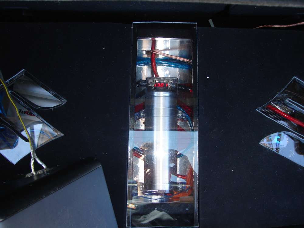 Nyt låg til bagagerumsboks, m/anlæg mont. Kondensatoren monteret i midten, med indb. voltmeter Nyt låg til bagagerumsboks, m/anlæg mont. Nyt låg til bagagerumsboks, m/anlæg mont. Nyt låg til bagagerums boks! Nyt låg til bagagerums boks! Prototype: Monteret i, men den bliver meget anderledes! Prototype: Monteret i, selve basenheden..! Prototype: Ja, hvad er der at sige: Set ovenfra med åbent låg! Prototype: Med åbent låg, med tre åbninger bagi til gennemføring af ledninger! Prototype: På højkant set forfra! Prototype: På højkant set bagfra! Prototype: Som den skal ligge(med låget lukket) Prototype: På højkant set bagfra