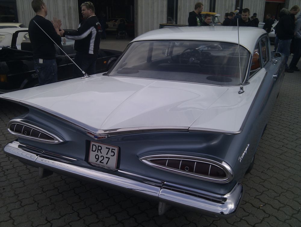 Køen til rullefeltet var lang! Stemningsbillede - der endte med at være godt med besøgende! Tja... fornuftig familiecontainer.... :-) Masser af biler med heftig bilstereo! Kværnen på den ellers så gamle slidte Chevy truck :-) En gammel klassiker! Vintage! Så er der linet up!
